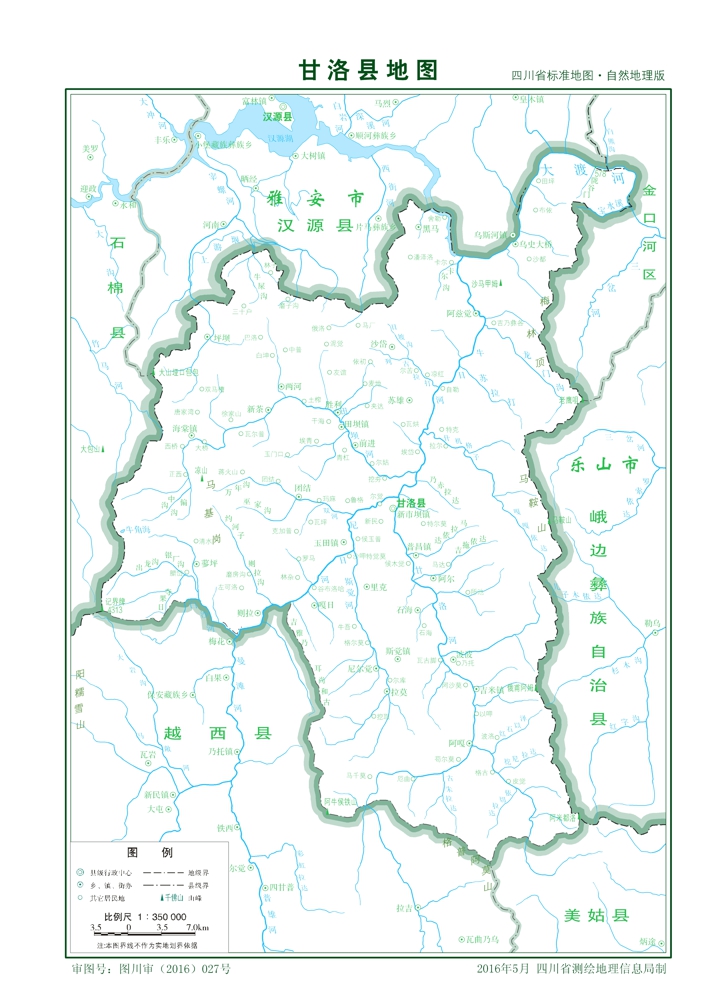 甘洛县位于四川省西南部、凉山彝族自治州北部,素有“凉山北大门”之称,东北滨临大渡河,与雅安市汉源县凭水相望,东邻乐山市峨边彝族自治县、金口河工农区,南连美姑县、越西县,西与雅安市石棉县毗邻,是“南丝绸之路”“灵关古道”“茶马古道”“彝藏走廊”的重要驿站。南北长73.4千米,东西宽54.8千米,全县面积2155.94平方千米。