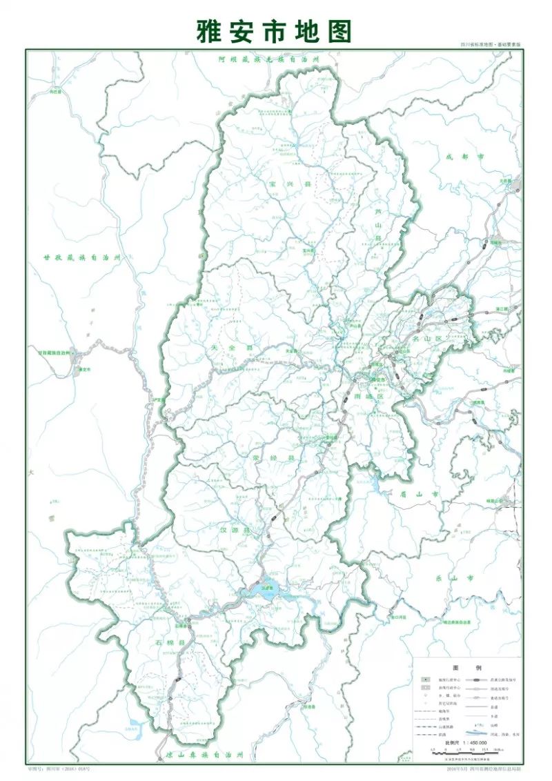 雅安市标准地图政区简图(2016年5月四川省测绘地理信息局制)