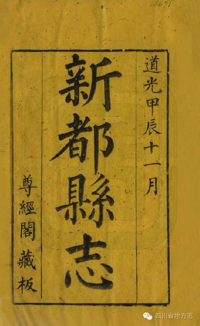 清张奉书修,张怀洵等纂。张奉书,江苏阳湖(今常州市)人,道光十六年(1836)任新都县知县。张怀洵,四川汉州(今广汉市)人,嘉庆六年(1810)举人,张邦伸(参见“【嘉庆】锦里新编”条)之长子,历官四川南部县教谕,会理州学正等。