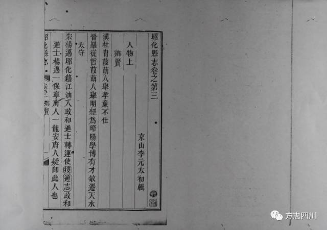 清李元纂修。李元,字太初,号浑斋,湖北京山县举人,乾隆五十年(1785)署昭化县知县时,尝主修《昭化县志》六卷。乾隆五十五年(1790)任崇庆州州同时,撰有记述该州事略的“杂记”。嘉庆六年(1801)任四川南充县知县,并署仁寿县知县。所著尚有《蜀水经》十六卷。参见“【乾隆】崇庆州志”条、“【嘉庆】仁寿县志”条。