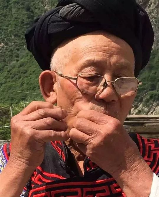 81岁老释比朱光亮表演两颊穿钢针绝技(图片来源:四川新闻网)