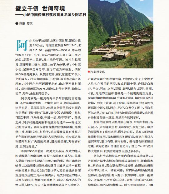 【方志四川•传统村落】陈康 陈文 ‖ 壁立千仞 世间奇境——小记中国传统村落汶川县龙溪乡阿尔村