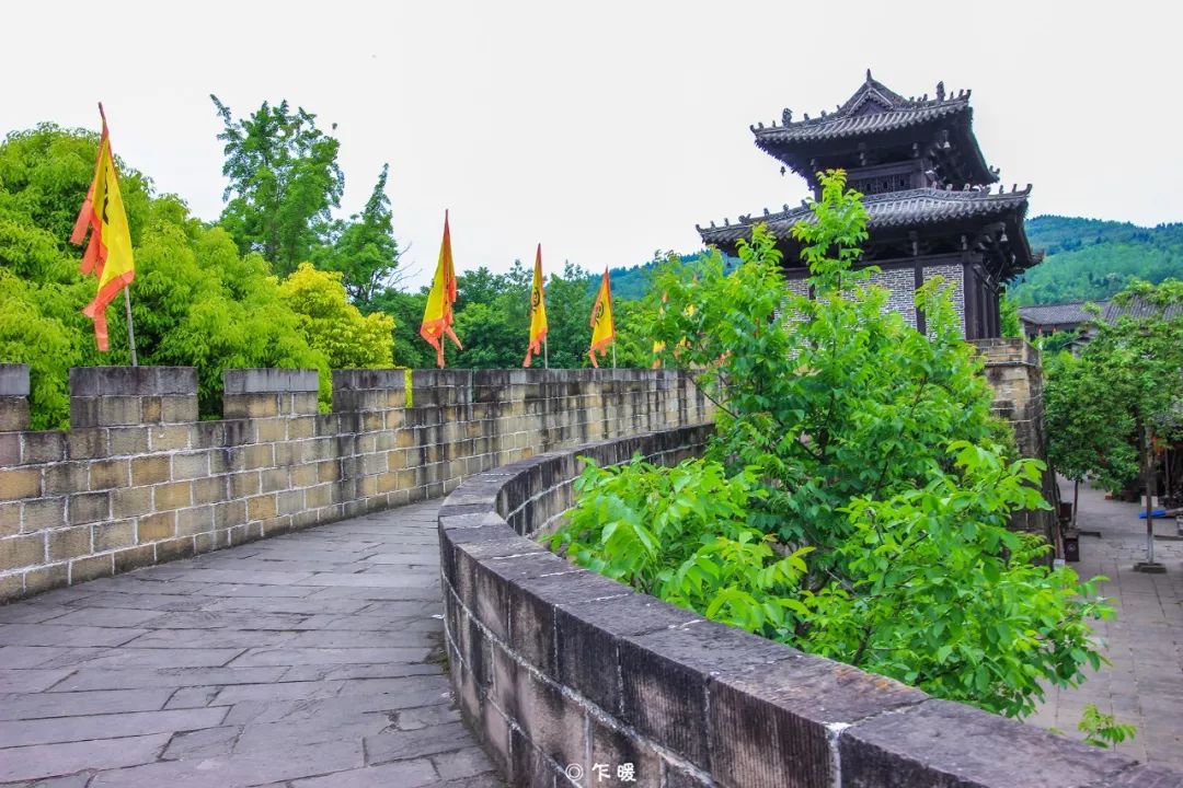 牛头山是剑门山向东延伸的余脉,海拔1214米。从古城远远望去,其山形如一头卧牛,牛头、牛身、牛尾毕现。牛头山坡陡林密,峰回路转,难以强攻得手的。牛头山上的天雄关,是剑门关之前的最后一道关隘。姜维退守剑门关之前,便带兵据守在此。站在牛头山眺望,呈现在眼前的昭化古城,四面环山,三面临水,宛如一幅巨大的天然太极图,一派“天下第一山水太极”的自然奇观。昭化古城,则位于太极阳极的鱼眼之处。古人对昭化的择址筑城,可谓勘察周详、用心良苦。
