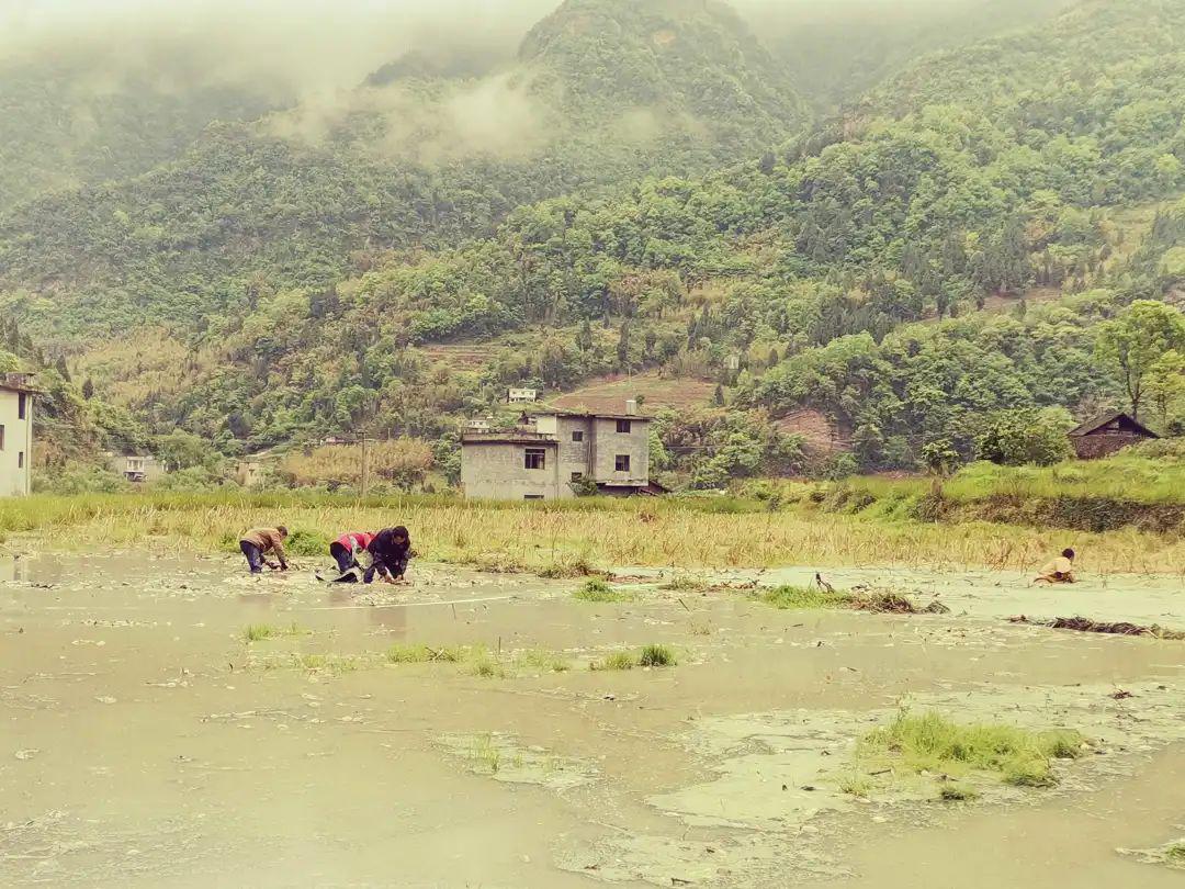 已是阳春三月,天下着小雨,还有些微冷,四川省古蔺县桂花镇田坝村,一群采藕人正在藕田里忙碌着。