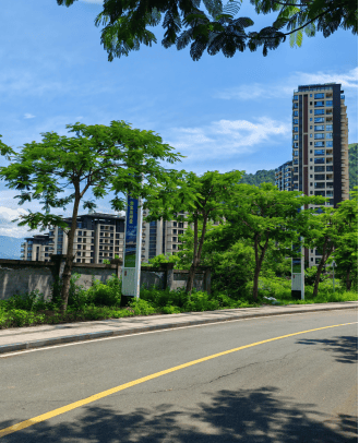 小区上方,建有一个“清源水业供水车间”。远处晃桥水库积蓄的水和近处山下安宁河流淌的水,便是经过这个供水车间净化加工成高品质自来水后,供城区居民、机关、企事业单位、商家使用的。这个供水车间的周围,同样生长着茂密的凤凰树。青翠碧绿且几乎一尘不染的凤凰枝叶,仿佛在告诉人们,这家企业生产出来的自来水绝对纯净。