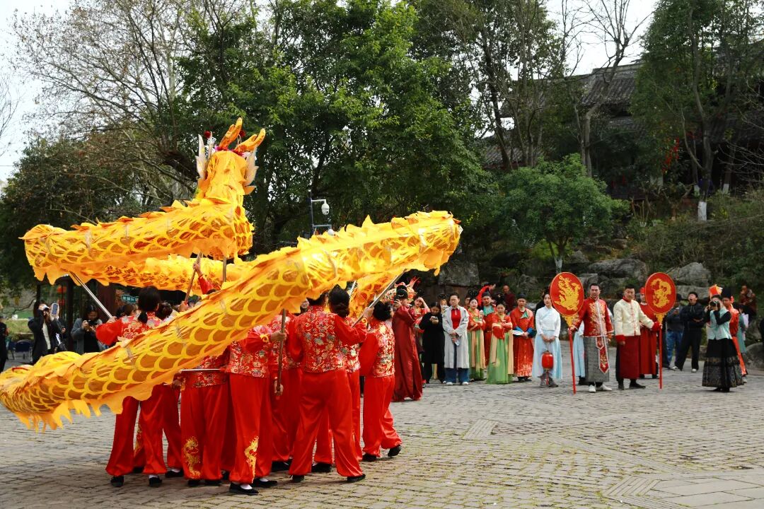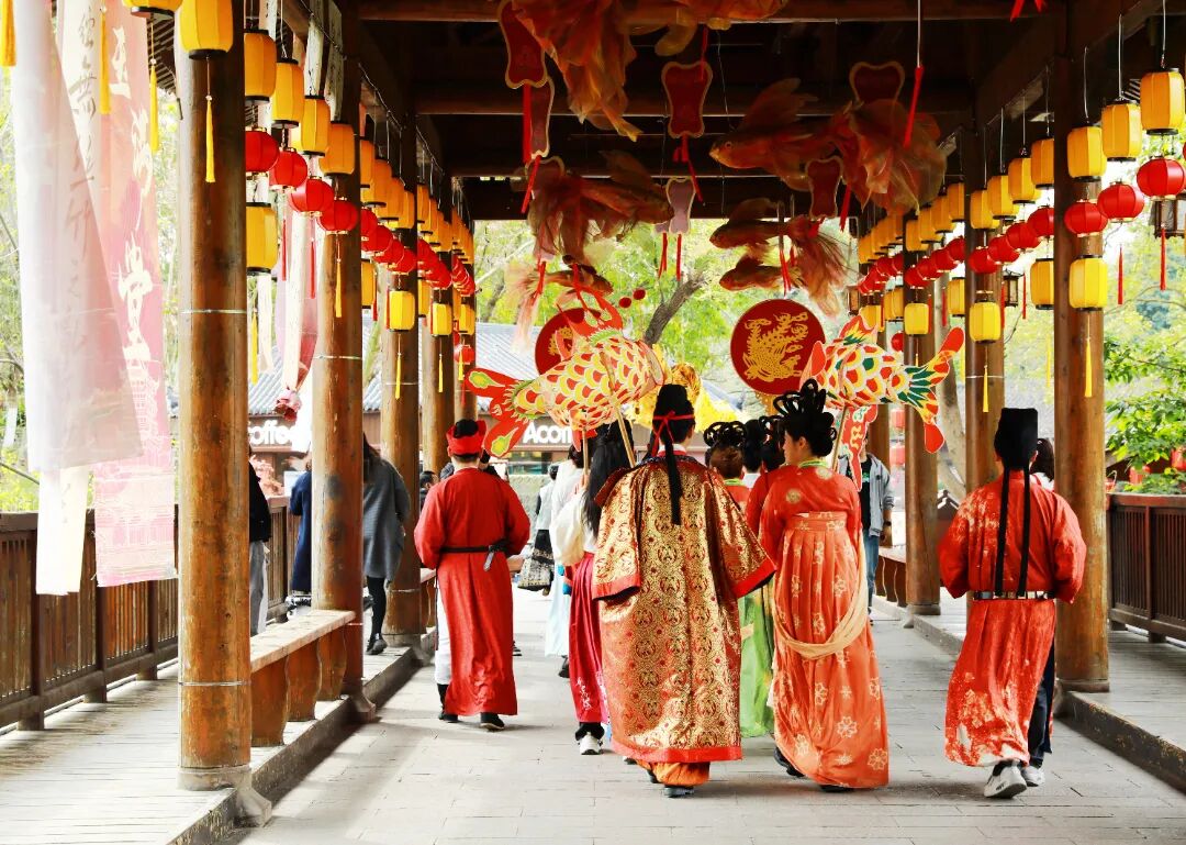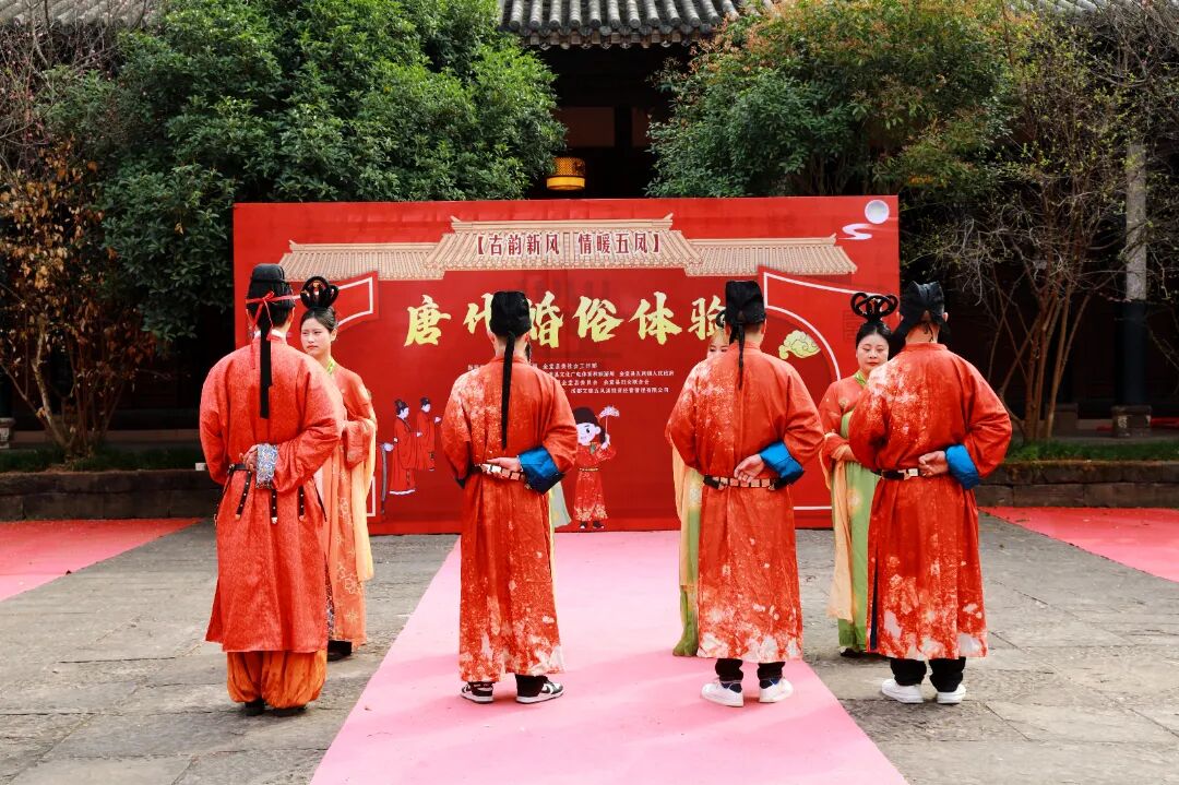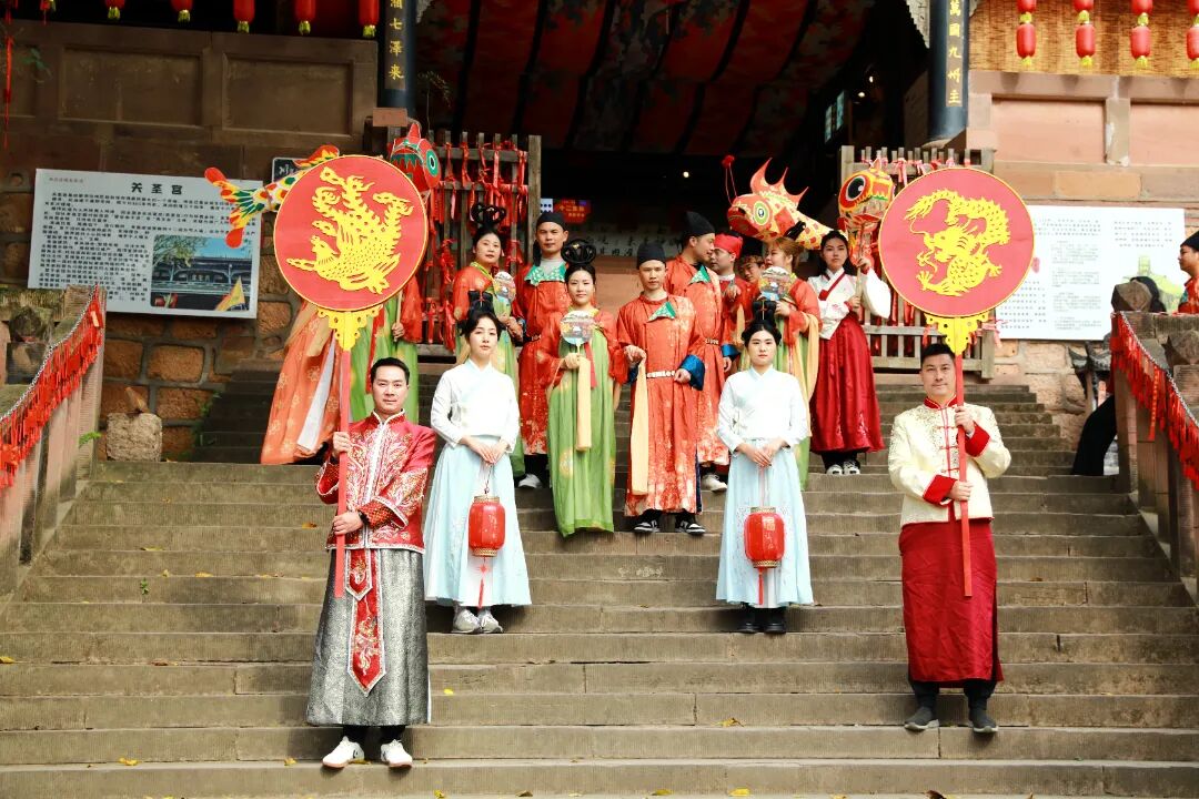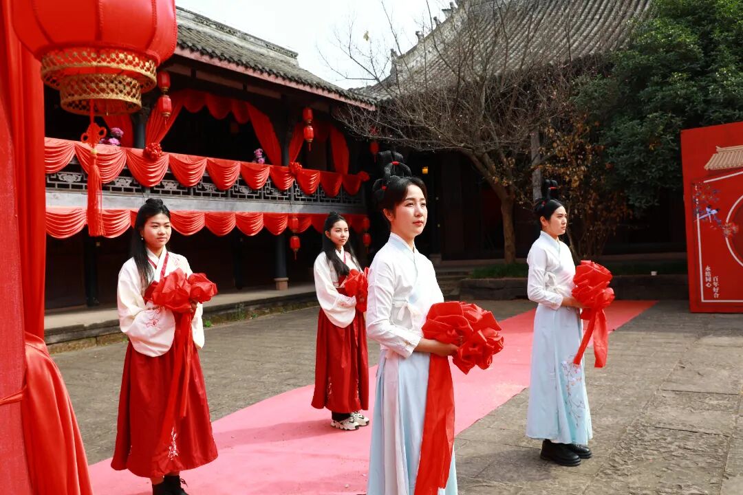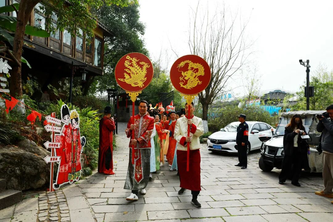 丙午年农历正月十五,元宵佳节。金堂县五凤古镇在晨光中苏醒,青石板路还带着昨夜春雨的湿润,南华宫前的红灯笼已高高挂起。今天,一场跨越千年的唐代婚俗礼仪在这里上演。