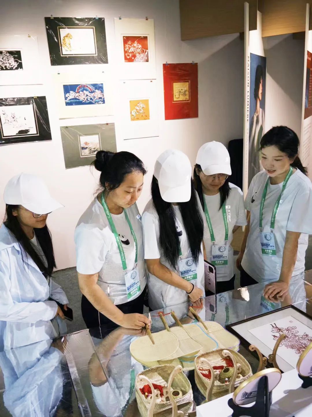 此次活动中,四川省成都艺体中学由竹编传承人、语文教师及外事处副主任何瑜带队,展出了一系列竹编和剪纸作品,集中展示了学校“非遗进校园”的育人成果。开展首日,展区便吸引众多观众驻足观看。