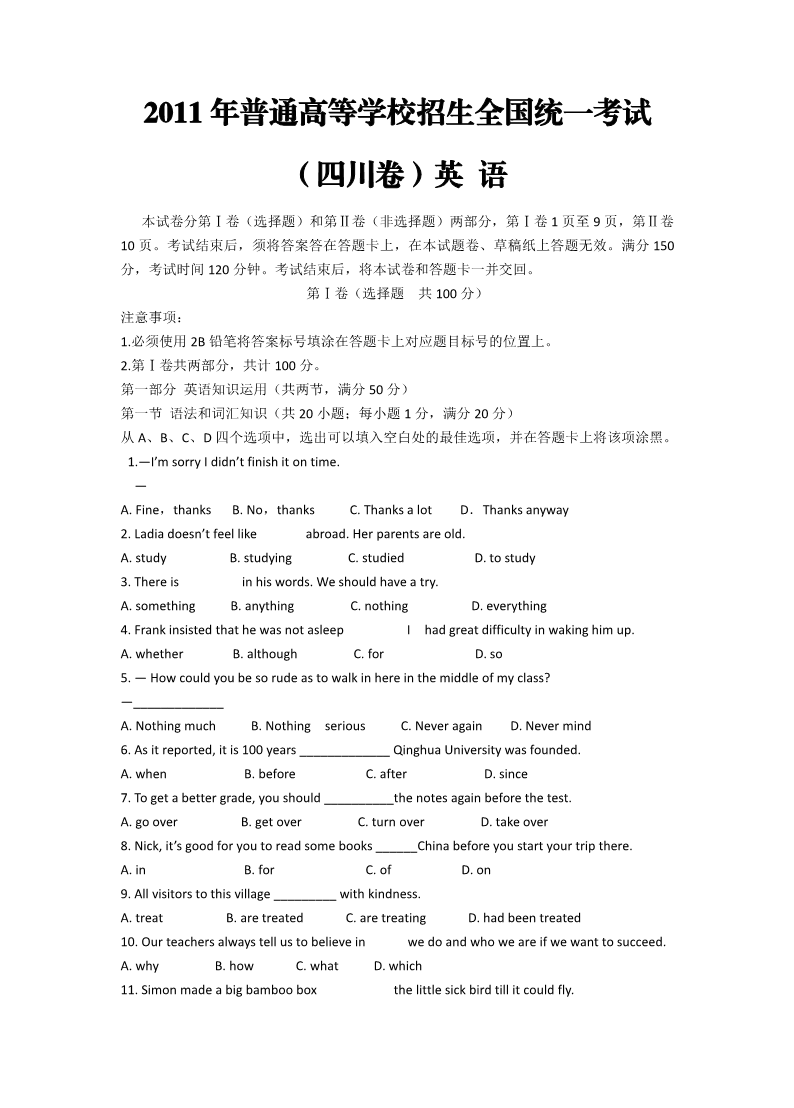 第一节 语法和词汇知识(共20小题;每小题1分,满分20分)