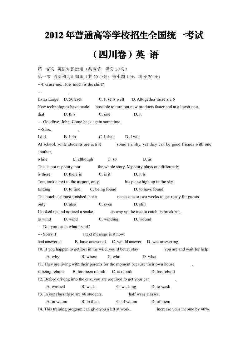 第一节 语法和词汇知识(共20小题;每小题1分,满分20分)