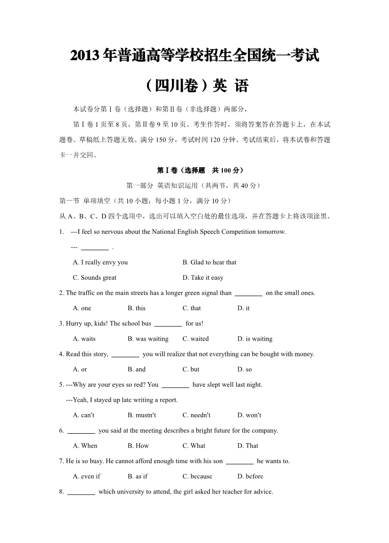 第一节 单项填空(共10小题;每小题1分,满分10分)