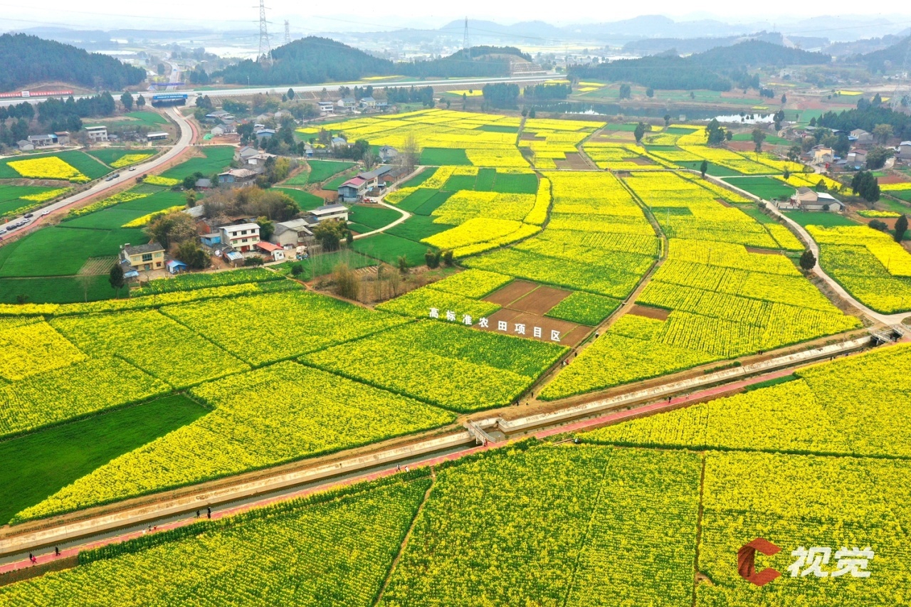 阳春三月,四川各地的油菜花竞相绽放,化身“金色海洋”,尽显春日的温柔与浪漫,吸引众多市民游客走进田间踏青赏花。让我们跟随C视觉摄影师的镜头,飞跃璀璨的油菜花海,去赴一场“金色之约”吧。