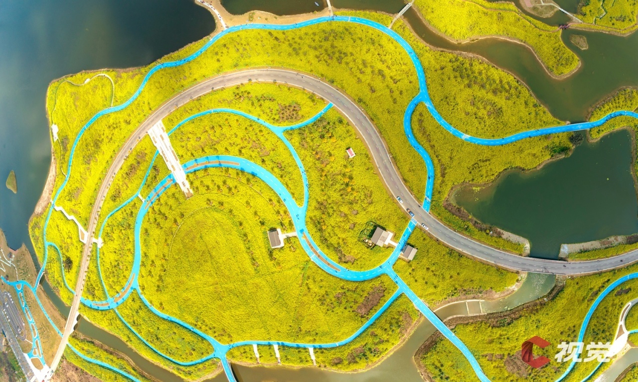 眉山市彭山区“五湖四海”湿地公园内的上千亩油菜进入盛花期, 吸引了众多游客前来踏春赏花,领略怡人春色。