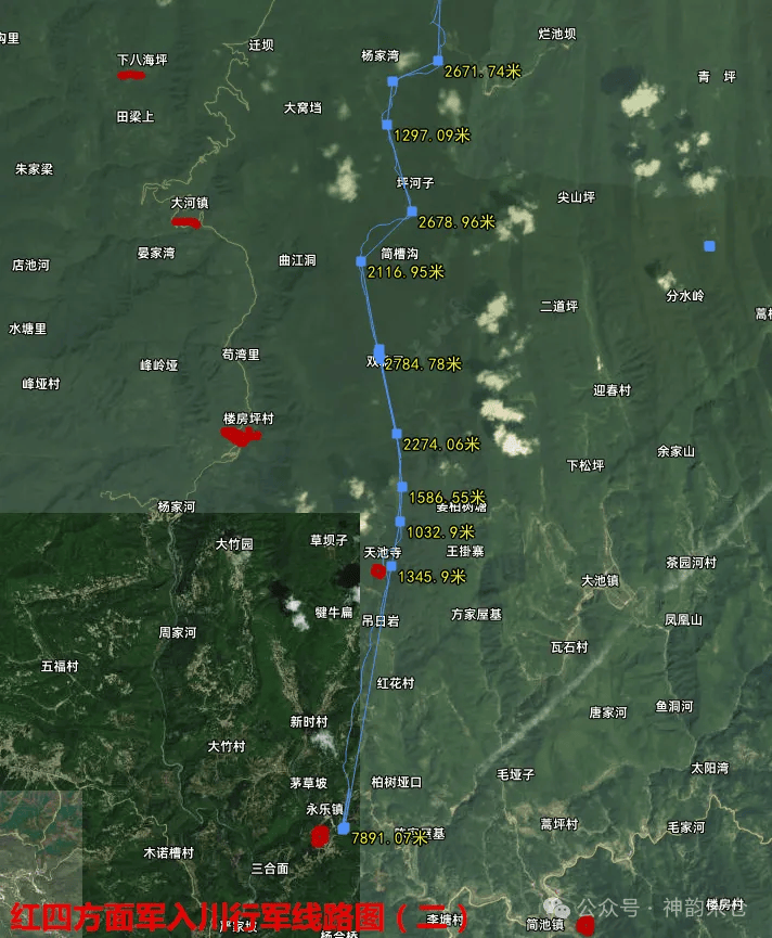 红四方面军入川线路卫星地图(张祺尉 制作)