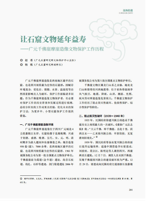 【历史文化】让石窟文物延年益寿——广元千佛崖摩崖造像文物保护工作历程||赵希 杨栋