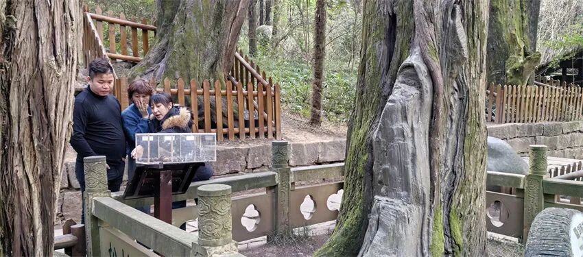 在深圳这座科技之城打拼的她,本以为家乡依然停留在过去的慢时光里。没想到在这古柏林中,她却发现了意外的科技感。看到每棵古柏腰间悬挂的铝制“身份证”,她掏出手机扫码,树龄、典故、历代养护记录瞬间弹出。得知景区已采用背负式激光雷达采集古树三维信息,甚至能用机器狗巡检防火时,她不禁瞪大了眼睛:“真没想到,咱们老家也用上了这么先进的科技!深圳有深圳的发达,老家有老家的底蕴,保护古树的手段一点都不落后,这让我特别触动。”