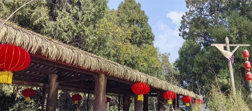 喜庆灯笼挂起来,蓝天白云更开怀(人民网记者 刘海天 摄)