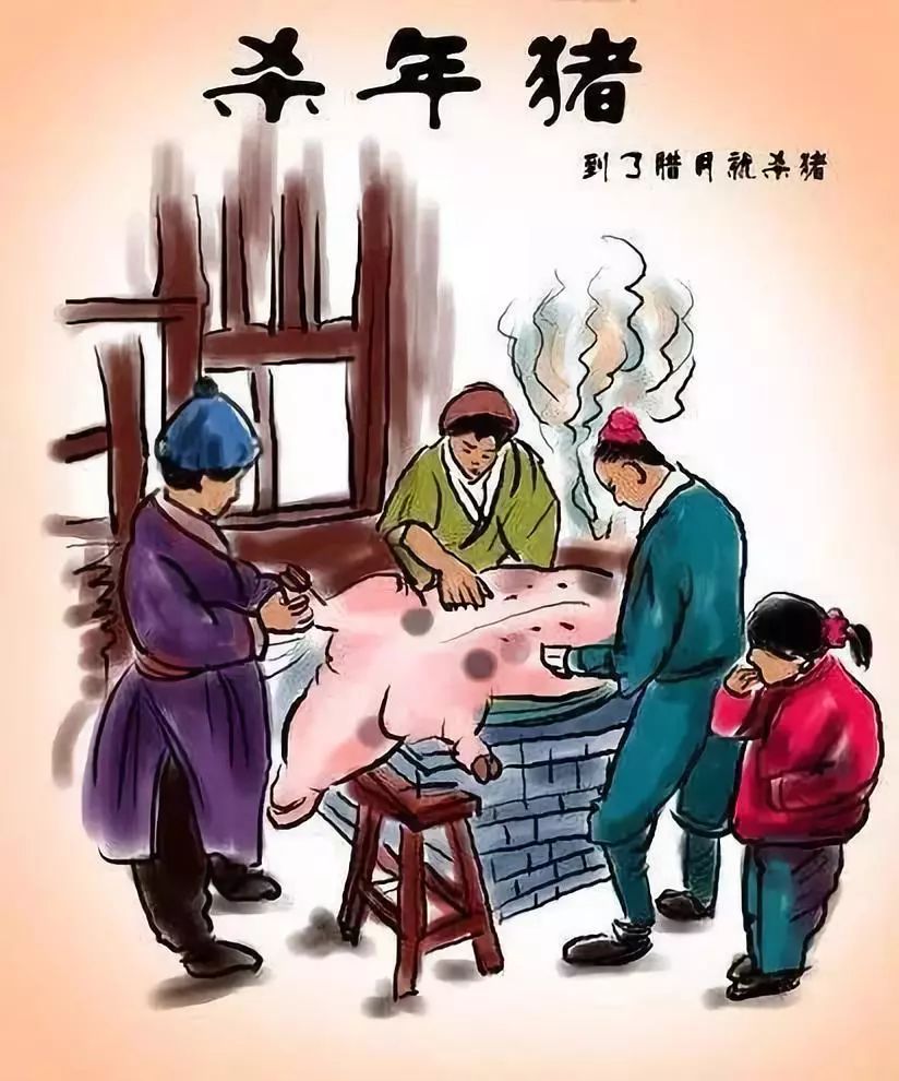 在老家,杀猪的流程历年如此,从垒灶搭台、磨刀霍霍,再到乘上饭桌,这些一气呵成的程序似乎都是经年不改的,所以丝毫不出差错。那些嫁出去的姑娘,素日里难得一聚的亲戚好友,都凭着这个由头前来坐坐板凳,闲话家常。筹光交错间,主人家会热情的客套一番:薄酒小菜,难成敬意。细想想,确是这样。如今的年代里,猪肉早已不是何等稀罕物,在色味俱佳的玉盘珍馐面前,显得更加逊色,自然也上不了琳琅华宴的餐桌。可大家伙儿吃的就是那股热闹劲儿,还有那份明明近在咫尺,却又因种种杂琐而疏远的团圆。“闲坐门前摇椅憩,笑看儿孙院中嬉”,无数乡土中国里的人们梦盼的晚年图景,就全然在这顿饭里了。时值今日,家里早就没了一顿杀猪饭作为春节的前奏牵引,腊月的风味儿消散得异常稀薄,以至于在腊月尽头,传统的年也少了几分味道。