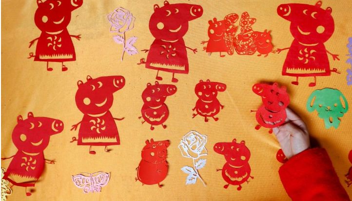 剪纸虽是一项古老而传统的民俗,但是也少不了要紧跟时代的步伐,而新鲜流行的事物,也影响了剪纸的花样。龙玲一边说着,一边掏出手机翻了翻活动时照的相片。“刚参加了一场活动,现场给小朋友剪了好多‘小猪佩奇’,他们兴奋得哇哇叫。”