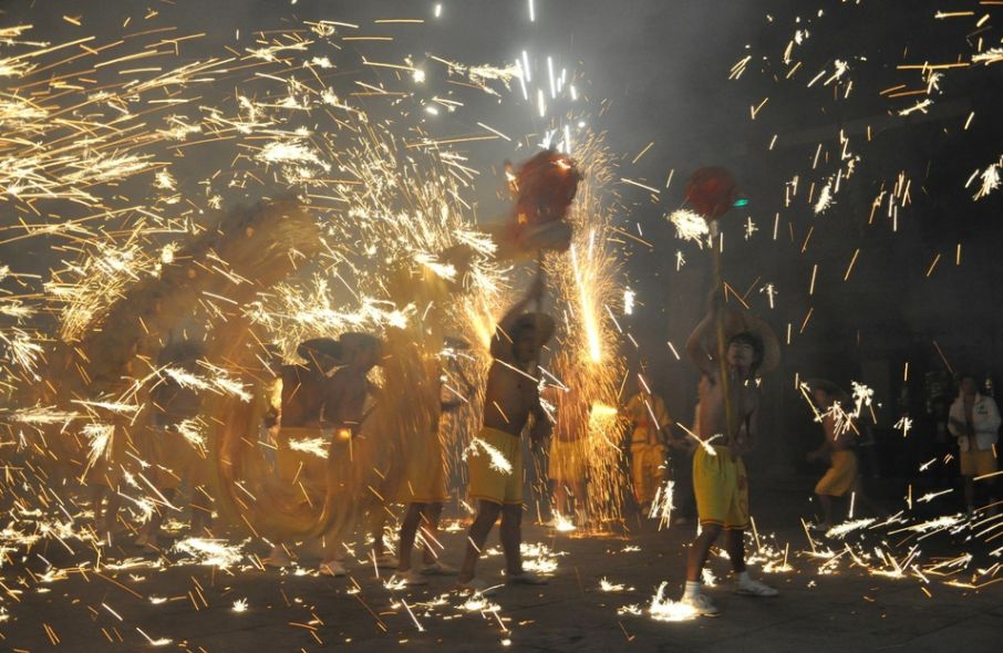 火焰中的仪式 一场惊艳的“火龙灯舞”