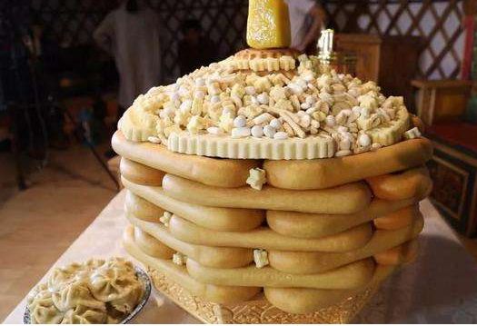 蒙古国春节期间讲究吃、穿、行。除夕之夜,家家户户都准备好了各种食品,包子、羊肉和糕点是必不可少的。包子是蒙古国人家招待客人最尊贵的食品之一,春节时一户人家通常要做上千个包子,包子个头不大,一般用羊肉馅,放少量蔬菜,用不经发酵的面粉擀皮。蒸熟后,包子里也就充满了油水。吃的时候也需要用地道的蒙古吃法,先用嘴吸出油水,再享用包子的美味。 在蒙古国的人家里,他们还摆放特色的糕点,糕点多为3、5、7、9层,通常9层最多,中间点缀一些小点心、奶酪和糖果。新婚夫妇的家里一般只摆放3层糖果点心,“3”意味着新生活的开始。一些富裕的家庭摆放上了烤全羊。