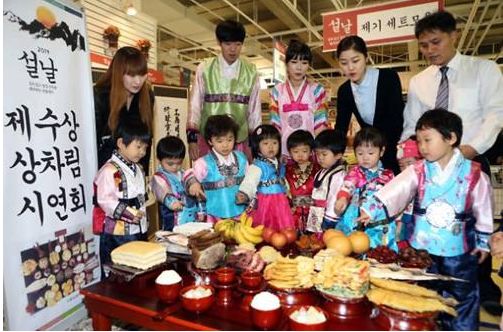 韩国人春节也有互赠礼物的习俗,礼物主要以食品为主,例如牛排、黄花鱼、传统点心等。韩国人的年夜饭讲究自家动手,在家中就餐,几乎没有在饭店吃年夜饭的。春节期间,几乎所有饭店都关门停业。近年来,许多海外打工者来到韩国,为让外国人能够体验韩国春节的欢乐,政府和一些民间团体也组织他们一起过春节。