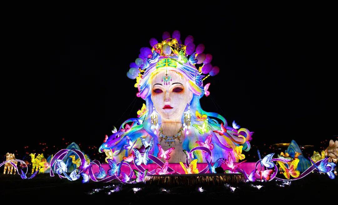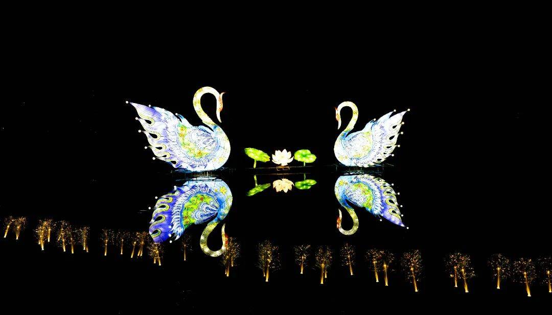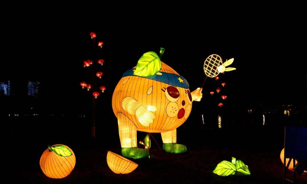 五彩斑斓的灯笼挂满枝头,将夜色点缀得如诗如画,仿佛一匹流光溢彩的锦缎在夜空中舒展。