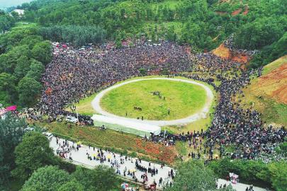 7月22日,航拍的布拖片区斗牛等民俗竞技比赛现场。四川报记者 王云 摄