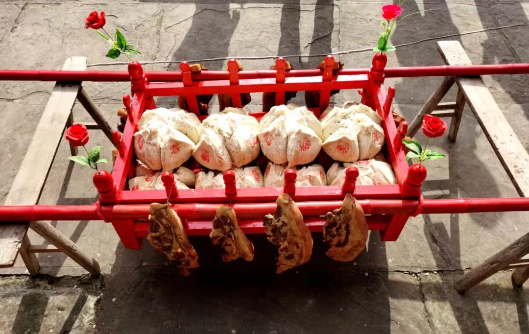 这时,女方会向男方要一定的金额作为陪嫁。一副滑竿,两副杆档是必不可少的。滑竿,就是最早新娘出嫁的一种简易工具,就是两根端正的木头上用竹或木头做成的座椅,固定在两根木头或者竹竿中间,供新娘出嫁坐。