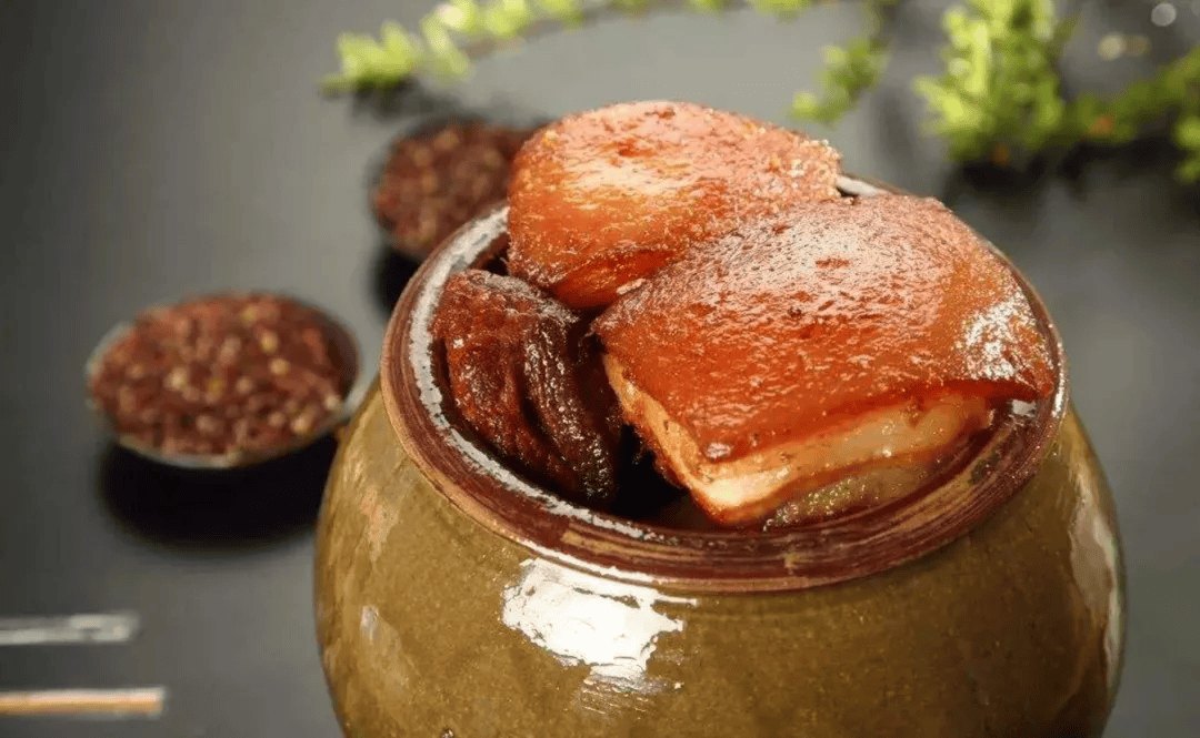 它是把坛子作为一种器具来储存猪肉,当地人一般喊的“油里肉”,这个实际上是一种储存手段,坛子的作用是储存工具而非炊具。坛子里面储存的肉在要吃的时候就拿出来,跟蒜头或者酸菜焖在一起吃。