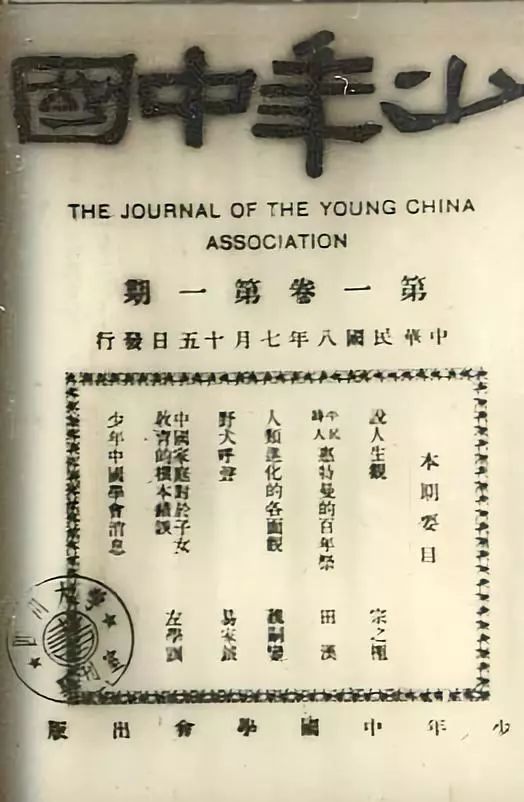 少年中国学会会刊《少年中国》第一卷第一期(1919年7月15日《少年中国》在北京正式创刊,为月刊,每年出12期为一卷。图片来自网络)