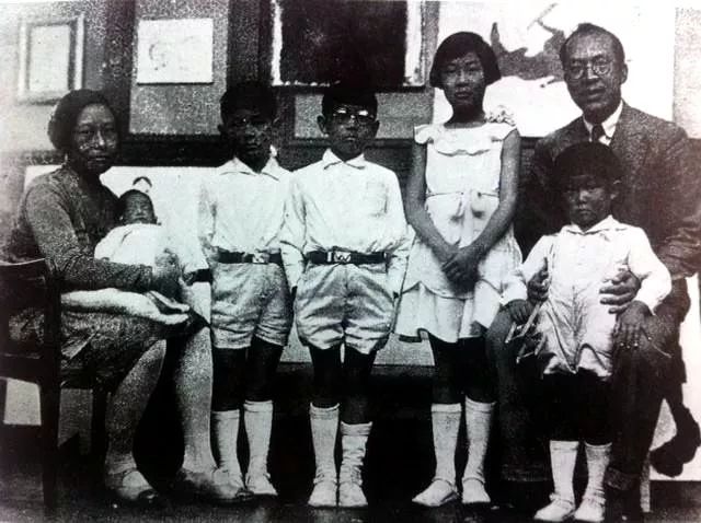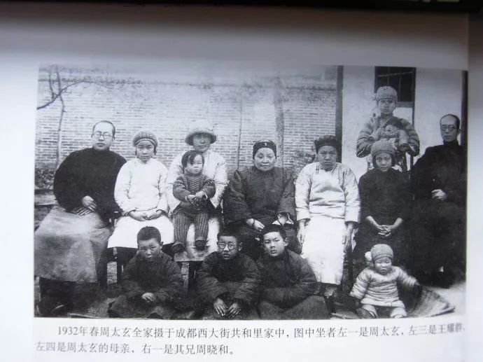 1932年春周太玄全家摄于成都西大街共和里家中(图中坐者左一为周太玄,左三是王耀群,左四是周太玄母亲,右一是兄周晓和,图片来自网络)