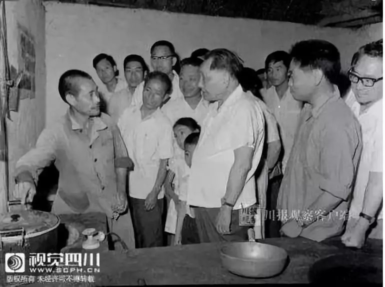 1980年7月,邓小平在成都簇桥农家了解沼气使用情况。