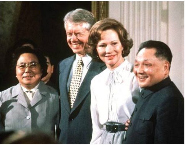 “正是由于有邓小平同志的卓越领导,正是由于有邓小平同志大力倡导和全力推进的改革开放,中国特色社会主义才能欣欣向荣,中国人民才能过上小康生活,中华民族和中华人民共和国才能以新的姿态屹立于世界东方。”