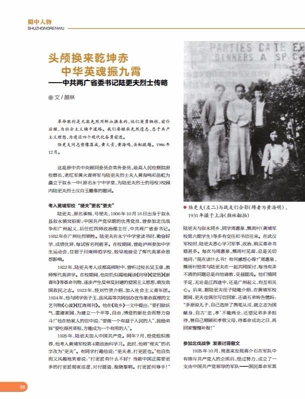 【方志四川•蜀中人物】颜林 ‖ 头颅换来乾坤赤 中华英魂振九霄 ——中共两广省委书记陆更夫烈士传略