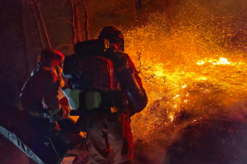 2022年,蔡茂强(右一)在广安市前锋区灭火作战。