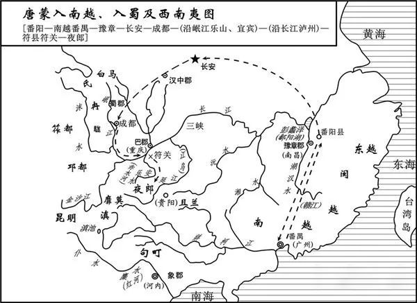 唐蒙入南越、入蜀及西南夷图(资料图片)