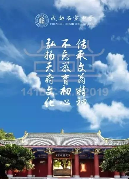 “古今一校,扬辉千秋”由季羡林1999年为石室中学建校2140年所题写,2015年刊立(图片来自网络)