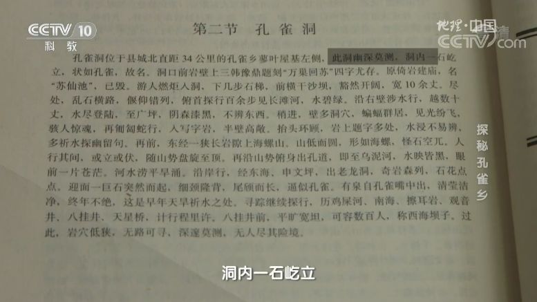 “传说中孔雀乡名字的来源与孔雀存在着关系,孔雀洞中有一汪终年不干的潭水滋润着山上的百姓……这些传闻是真是假?孔雀乡的山形地貌,有着哪些不同寻常之处?洞穴之中的结构环境和水文状况,又具有怎样的特点?”2018年10月19日下午5时34分,央视科教频道《地理中国》栏目播出《探秘孔雀乡》,西华师范大学国土资源学院教授罗培亮相节目,对孔雀乡传说中的奇特现象作出了科学解释。