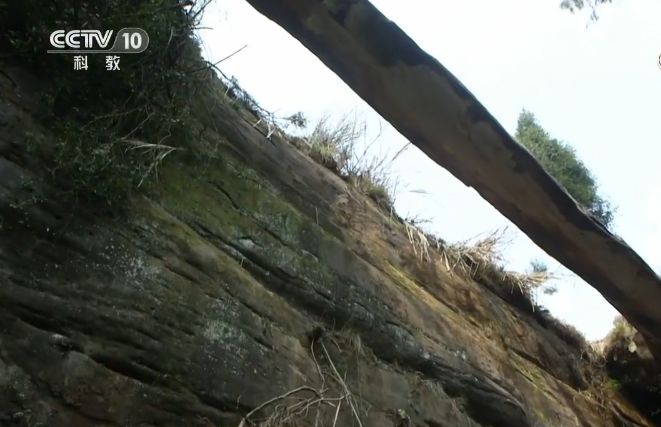 “这样奇特的天生桥是经过大自然漫长岁月雕琢而成。”罗培解释,一般来说,天生桥多出现在喀斯特地貌中,是溶洞崩塌后的残留部分,大都呈现为穹隆形。而这座天生桥属于砂岩,它宛如一块平整的石板横跨在山崖上,这又是怎么形成的呢?原来桥边的崖壁如刀砍斧削般陡直,由一层层厚砂岩组成。“砂岩的岩层越厚,发育节理更彻底,一旦崩塌,从上到下一起崩塌。中厚层的砂岩,上下形成差异性风化后,岩石不断剥蚀崩落,最终只留下了中间一段类似石桥的天然形态。”罗培说。