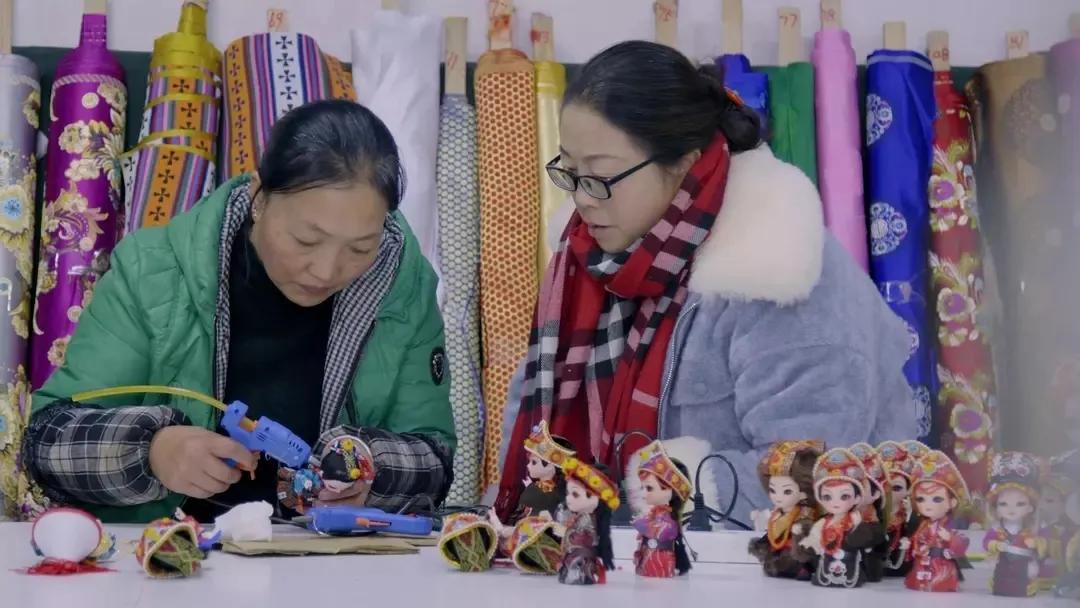 在唐克镇的白河社区居委会,彩色的布料和丝线,在当地藏族妇女的巧手中,变成一个个栩栩如生的布偶娃娃。这种手工艺品,叫做“吉祥娃娃”。