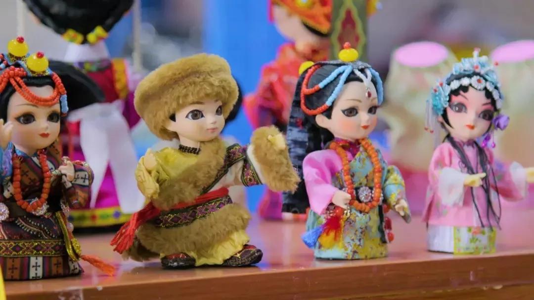 吉祥娃娃融合了藏族、羌族、回族、汉族的民族特色,服饰精美,造型生动,深受游客们的喜爱。