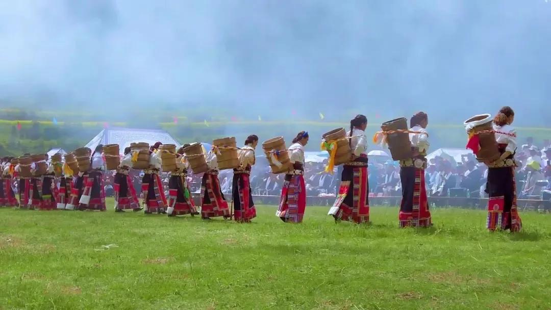 藏历每年五月初四“度炯节”是山区人民表达他们对大山的崇拜和祈福的重要仪式。若尔盖求吉乡的人们,欢聚在山脚下,盛装歌舞。