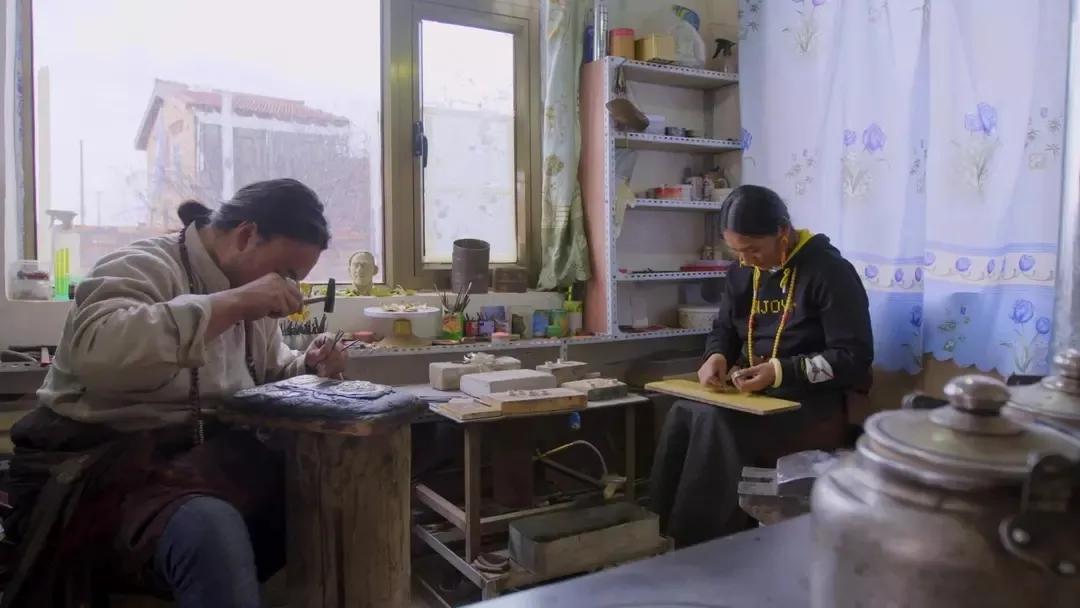 陶波是若尔盖县文化馆的馆长,在他的手下,藏族传统的木刻版画也紧跟时代,发展出新式的版画类型----“藏族祥巴”,陶波也正是这项手工技艺的非遗传承人。