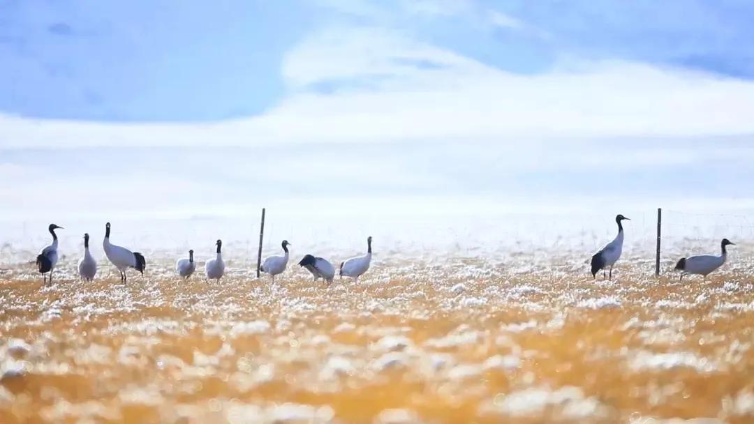 大山之外,若尔盖草原的精灵“黑颈鹤”是世界上唯一生长、繁殖在高原的鹤,若尔盖湿地生物资源丰富,是黑颈鹤理想的居所。