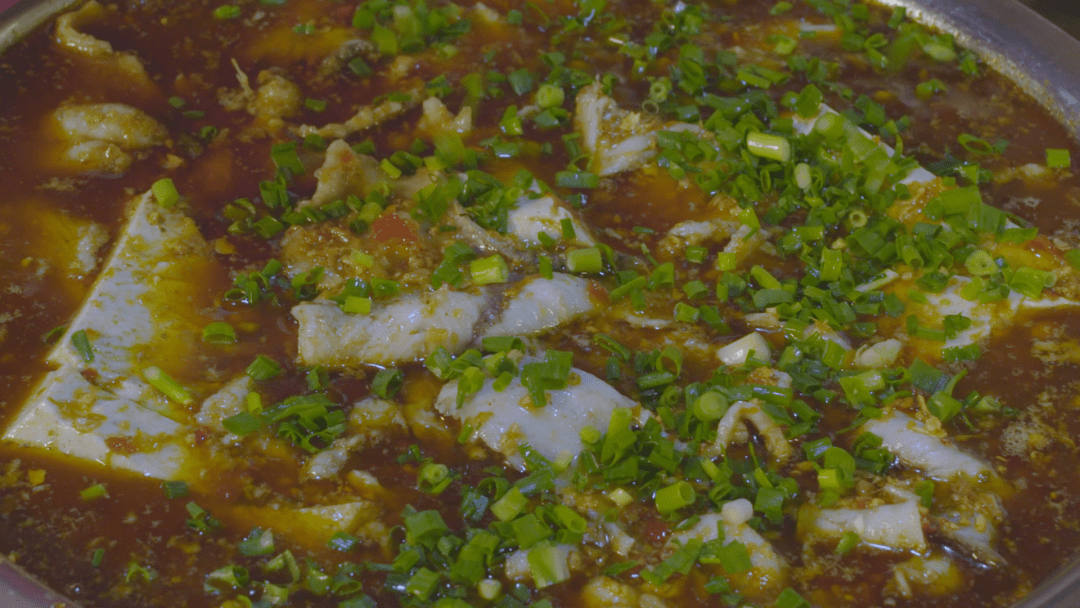 陈氏六合鱼将各种滋味合而为一。泡椒、酸菜、姜蒜、豆瓣制成的底料浸入沸腾的油中,制成香气四溢的汤底。挞好的鱼片均匀地抹上蛋清,放入滚烫的汤中,只要片刻就可以烫熟。随后加入高汤熬煮,很快,鱼肉已然入味并片片浮于汤面之上。