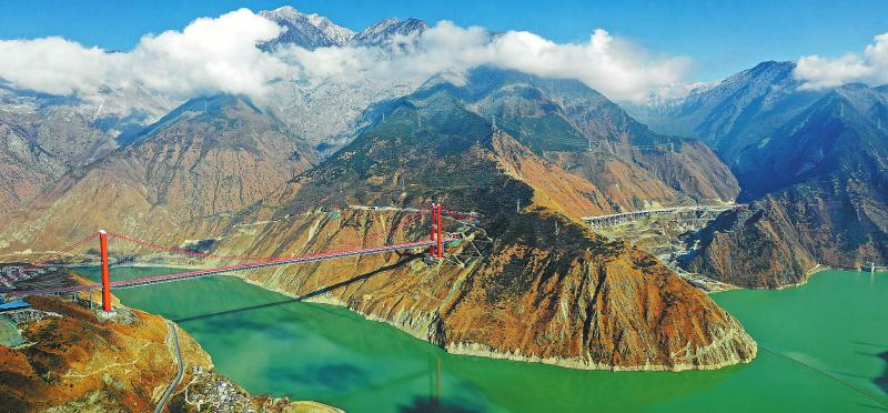 雅康高速公路泸定大渡河兴康特大桥一角。新华社发