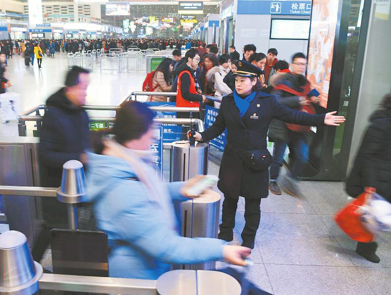 2018年12月31日晚,46岁的成都东客站值班主任谯丽梅当班。 四川日报记者 肖雨杨 摄