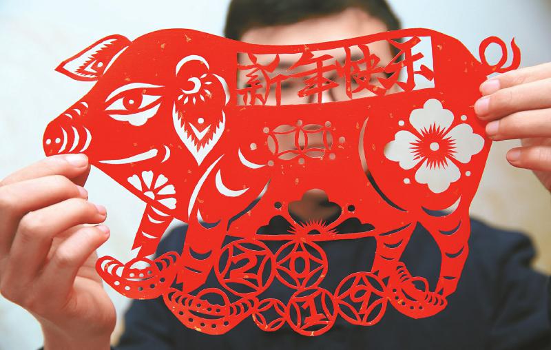 金猪纳福 新年临近,内江市东兴区民间剪纸艺人李有生创作了近百幅以生肖“猪”为主题的剪纸作品,喜迎2019年的到来。