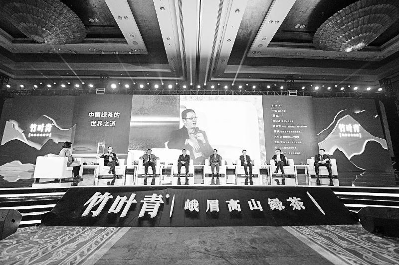 峨眉高山绿茶战略成果发布会上,陈宗懋、吴晓波、王庆等嘉宾共商“中国绿茶的世界之路”。