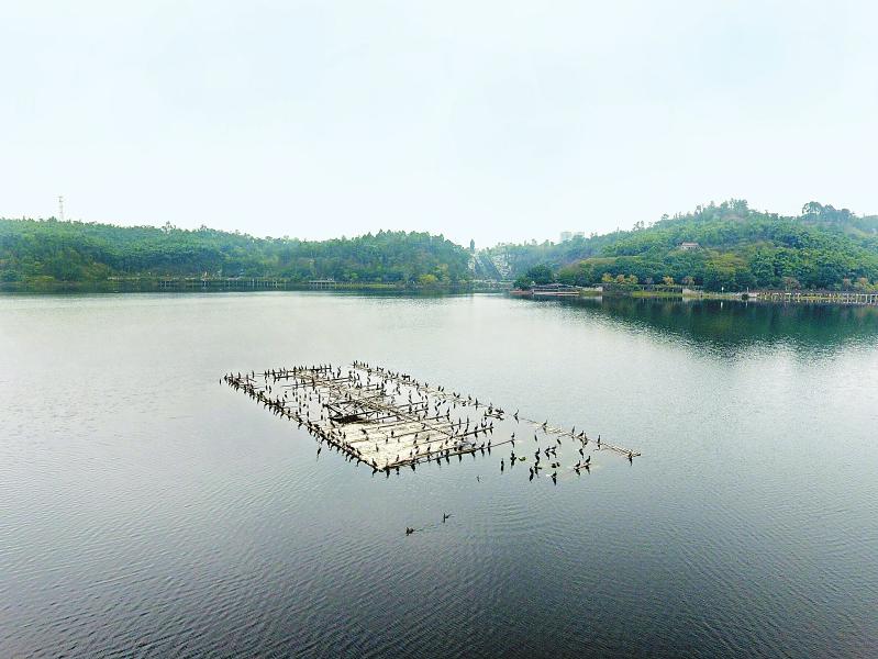 2018年12月26日,古宇湖内飞翔的候鸟。隆昌市古宇湖每年冬季都会迎来上万只越冬候鸟,其中很多都属于国家二级保护动物。在这些候鸟中,有琵嘴鸭、青头潜鸭、鸳鸯、灰麦鸡、白琵鹭和小天鹅等数十个种类,这也为古宇湖带来了“鸟的天堂·候鸟乐园”的美誉。目前,古宇湖各类越冬候鸟已达两万多只。 王林远 摄